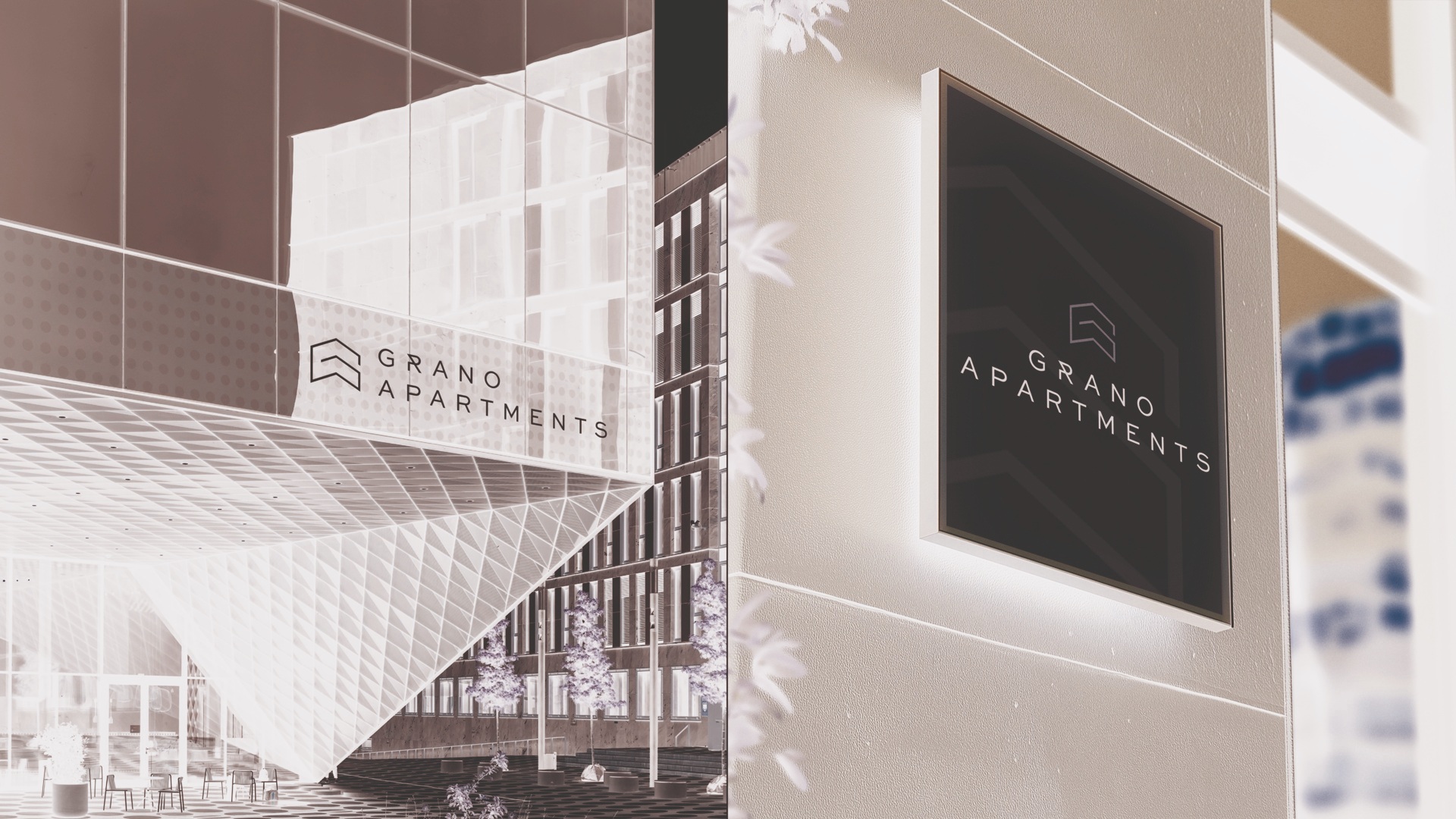 The geometric, simple form of the signet reflects the spirit of modern architecture, referring to the elegant and stylish interiors of the apartments. The clean, harmonious line emphas the high standard, comfort and refined details that distinguish the brand from the competition.